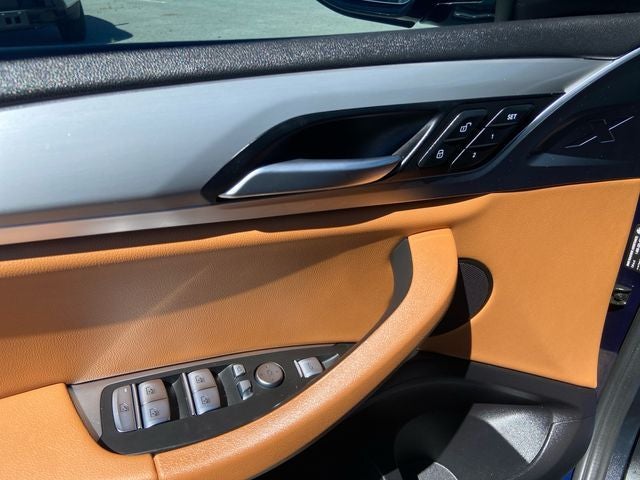 The exterior of this X3 is adorned in a stunning Tanzanite Blue II Metallic paint, complemented by the sleek and aggressive M Sport Package. The 21-inch bi-color wheels and aerodynamic kit enhance the vehicle's sporty and sophisticated appearance, turning heads wherever you go.