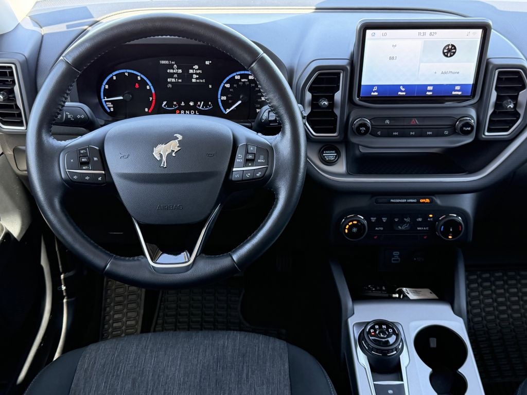 The Bronco Sport's spacious interior offers a wealth of premium features, including heated front seats, a wireless charging pad, and a universal garage door opener. The Convenience Package also adds a host of thoughtful touches, like front seatback pockets, a leather-wrapped steering wheel, and rear parking sensors for effortless maneuvering.