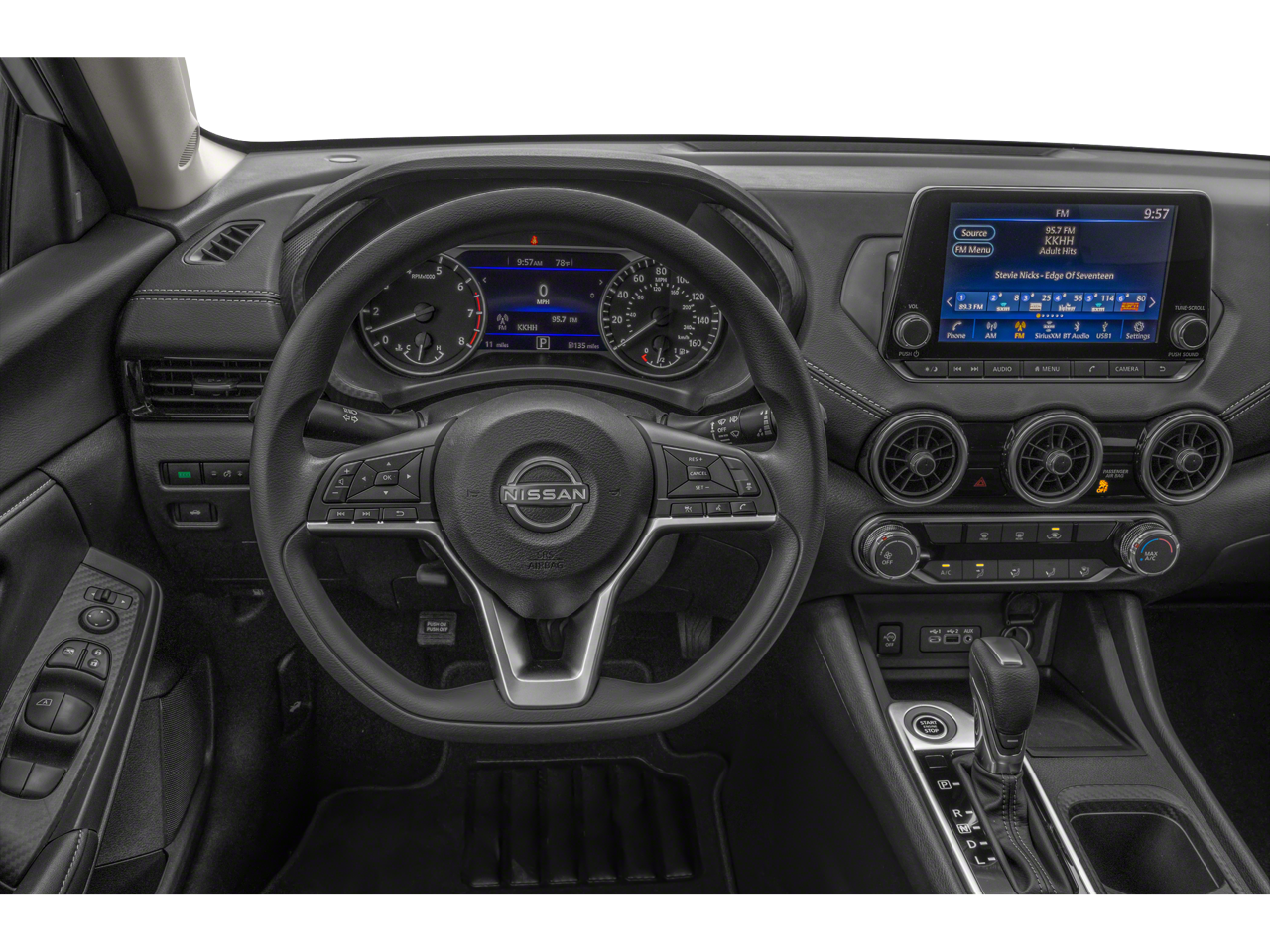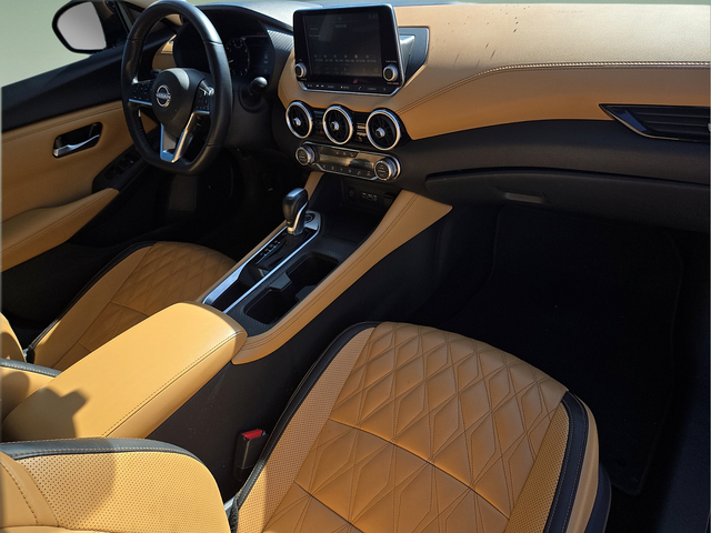 Step inside the Sentra SV, and you'll be greeted by a meticulously crafted interior that prioritizes comfort and convenience. Quilted leather seat trim, a leather-wrapped heated steering wheel, and a leather shift knob create a luxurious ambiance, while the Nissan Connect infotainment system with Apple CarPlay and Android Auto integration keeps you connected and entertained.
